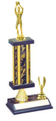 We offer the basic figure and base basketball trophy, a very economical trophy, to the classic two post-basketball trophies. Or, if you're looking for something a little less traditional, the Cobra Basketball Trophies are awesome.