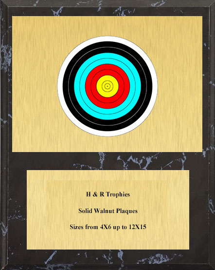 We offer a number of styles of archery trophies. If you would like an archery trophy, click on the link below. You pick your figure and then choose the style of trophy you would like. If you are looking for something a little different, we have the acrylic archery ice awards. They come in two styles and two sizes to choose from. To check these neat awards out, click the link below. You pick the style and size and select the 2" Mylar insert that you would like. Our archery medals are an economical way to reward your club members. They can be engraved for $.07 a character. The medal comes with a 7/8"x 30" neck ribbon. You can select your medal without a neck ribbon, or with a wider 1" x 30" ribbon, pin drape and presentation box. If you would rather have a wall plaque, check out our large selection of beautiful wildlife and target images. We have many sizes to choose from. We offer a cherry finish, solid walnut, black marble, and resin plaques. If you would like to use your photo, the slide-in plaque is a perfect way to show off your photo. Just let us know if your photo is vertical & horizontal. We can custom print on the plaque for $.07 a character.
