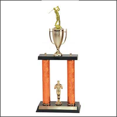 We offer the basic figure and base golf trophy, which is a very economical trophy at the price of $5.00, to the classic four post golf trophy for $50.00. If you're looking for something a little less traditional check out our golf resin trophies. They also make a great gift for the golfer in your life!