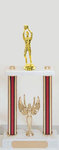 Our DP Basketball Tournament Awards may be purchased in height of 18" to 30". The DP-style basketball trophy has two columns with a centerpiece and your figure of choice on top of the trophy. Each of these basketball trophies comes with free printing.
