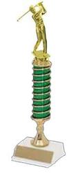 Men's golf trophies and women's golf trophies, perfect for your next golf tournament. Stunning looks set the R1R golf trophy apart from other awards. This golf trophy is a single post trophy with a round column and riser, they are available in heights of 10" to 18".