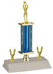a rectangular single-column trophy with a riser & two trim figures. Each of these men's or boys' trophies comes with free printing.