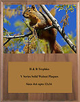 We have been selling squirrel hunters these beautiful plaques since 1988. They are great awards for a club squirrel hunt or NKC and UKC competition hunts and bench shows. Our plaques are available in three wood types, cherry finish, black marble finish, and solid walnut. Each includes the squirrel picture you choose below and an engraved plate with a reasonable amount of free engraving.